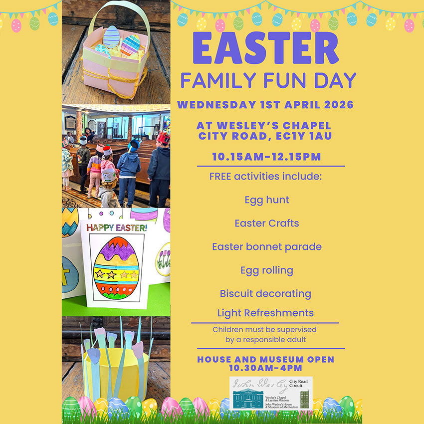 Easter crafts / Egg hunt / Bonnet parade / light refreshments / Free of charge